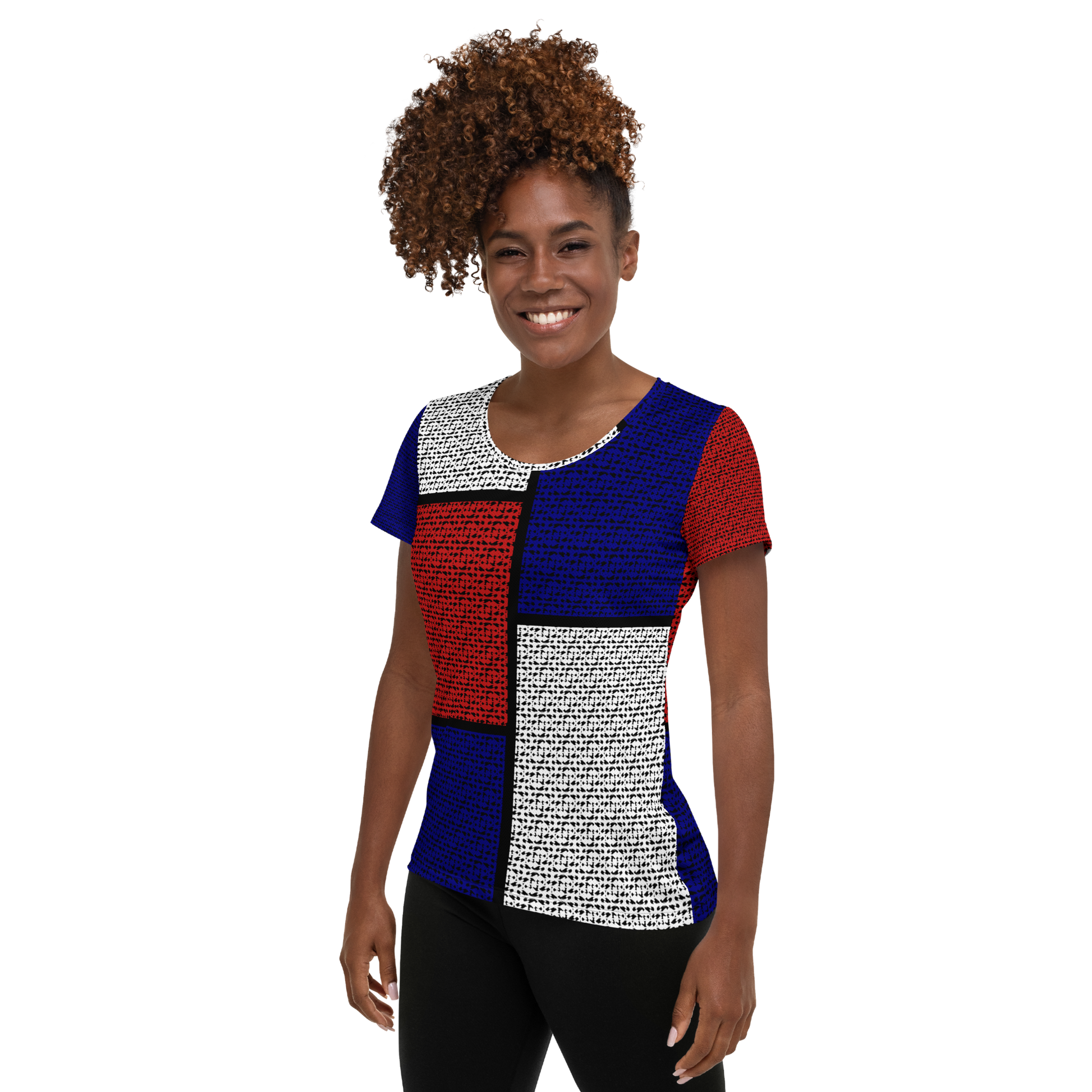 T-shirt de sport pour femme en polyester et spandex alliant confort et style : son tissu en maille contrôle l'humidité et permet de rester au sec et à l'aise